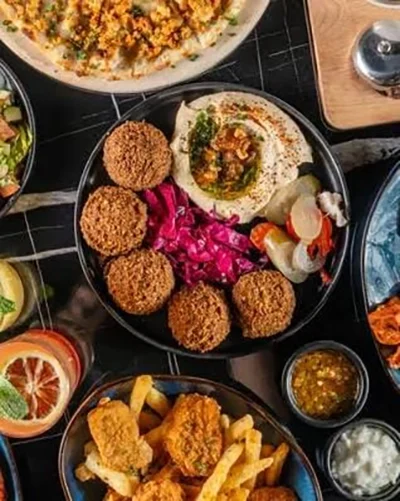 $18~ Mix any 3 - Hummus, Babaganoush, Falafel, Tabouli , Arabic Pickles ~